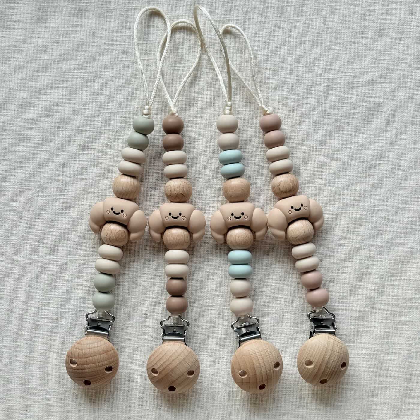 Het speenkoord is uitgevoerd in zachte nude tinten en verkrijgbaar in vier kleuren, zodat er altijd een variant is die past bij elke newborn outfit of kraamcadeau.