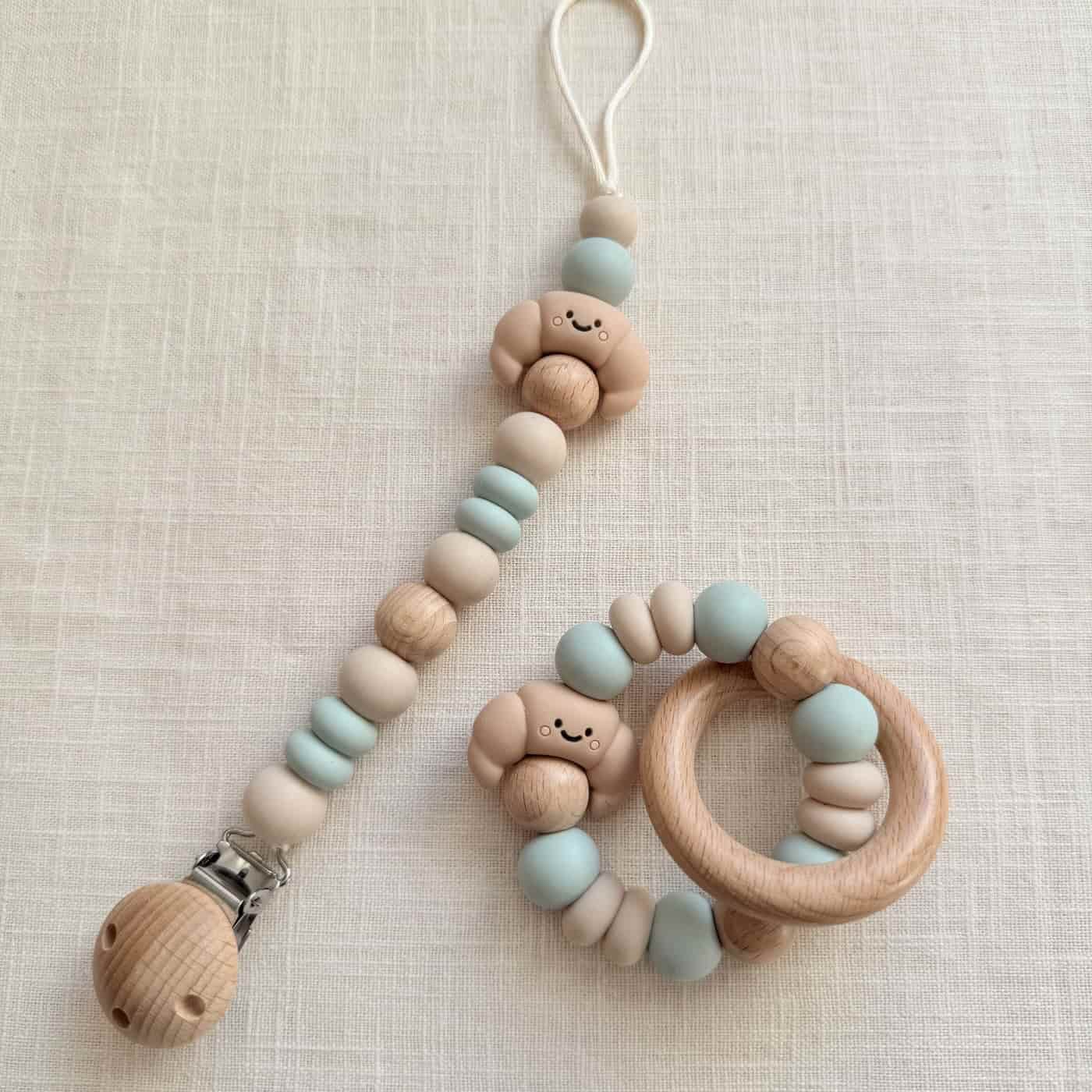 Gemaakt van veilige, gecertificeerde materialen en volledig handgemaakt met zorg. Wat deze collectie extra leuk maakt is dat er bijpassende bijtringen van zijn. Je kan het speenkoord leuk combineren met een bijpassende bijtring, zo heb je gelijk een leuke set die niet alleen praktisch, maar ook een leuk kraamcadeau is