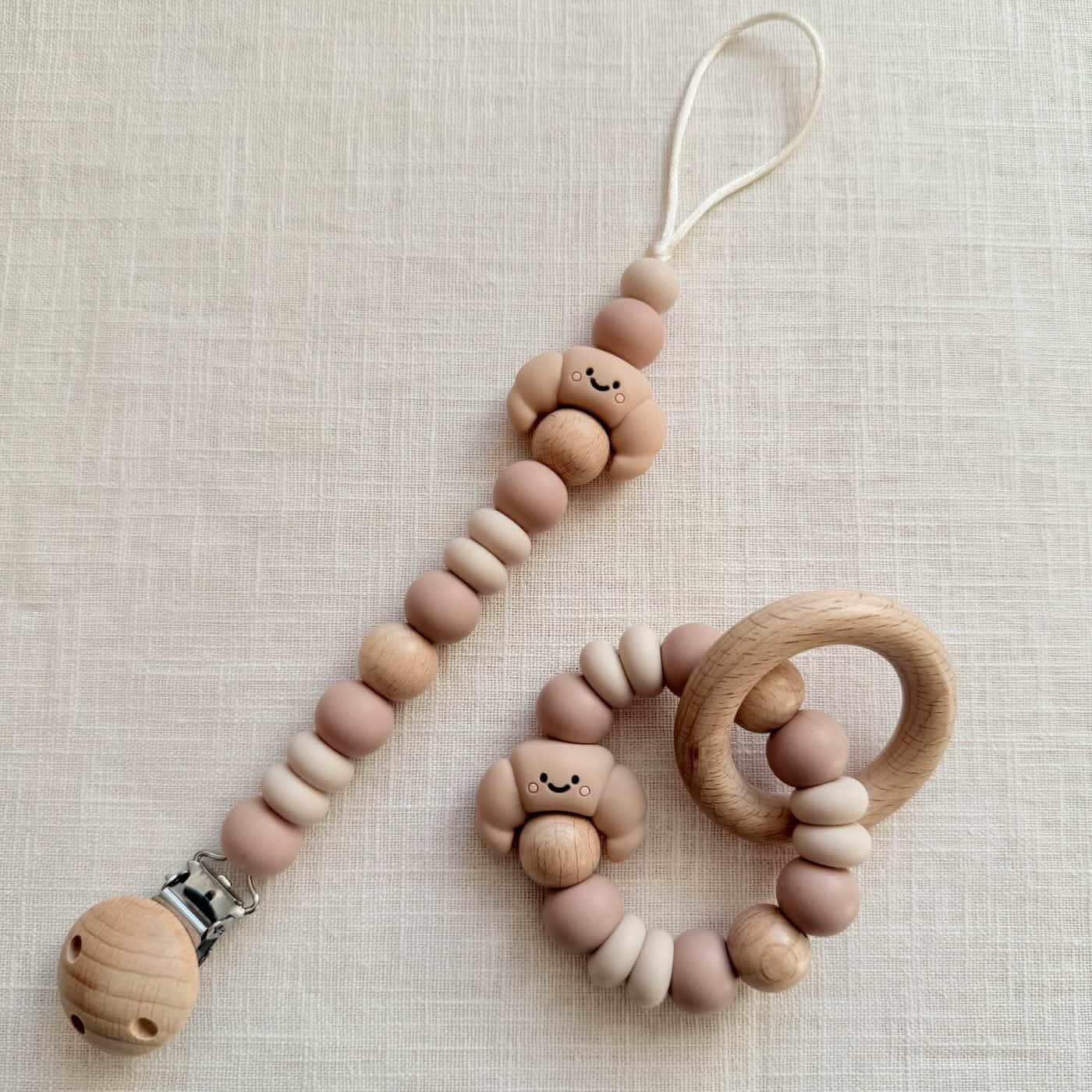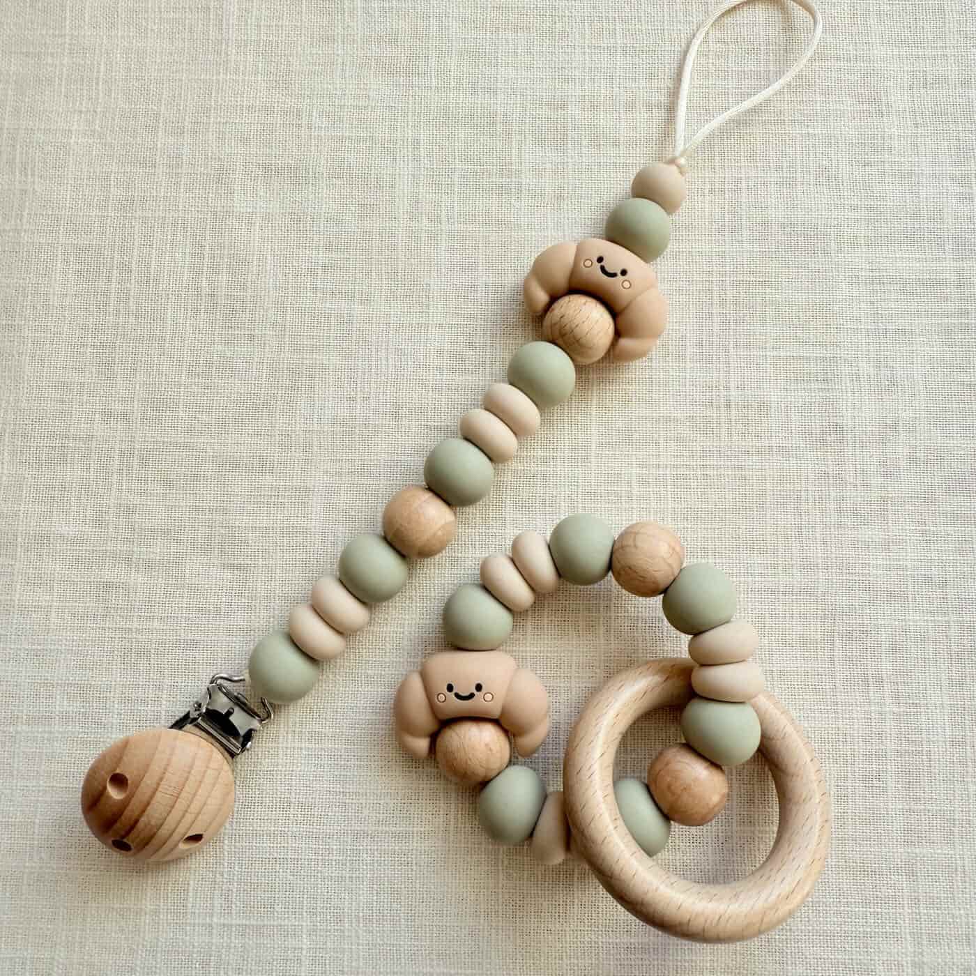 Het Speenkoord croissant is een tijdloze must-have voor elke ouder. De neutrale kleuren passen met gemak bij elke stijl, terwijl het croissantje zorgt voor een unieke en speelse uitstraling. Het speenkoord voorkomt dat de speen op de grond valt, dus nooit meer een vieze of kwijtgeraakte speen.