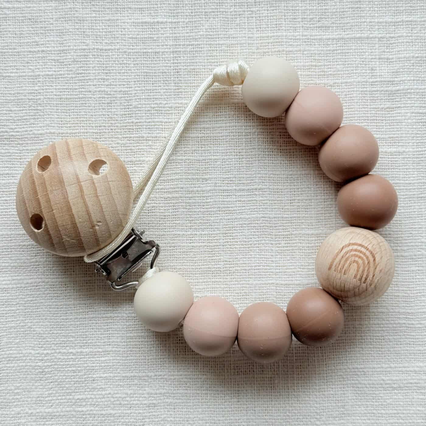 Dit handgemaakt speenkoord Rainbow is gemaakt van zachte siliconen kralen gecombineerd met een houten regenboog kraal – veilig, stijlvol & praktisch. Dit handgemaakte speenkoord zorgt ervoor dat de speen van je baby altijd schoon en binnen handbereik blijft. Ideaal voor onderweg of thuis, en bovendien een echte must-have voor iedere ouder.